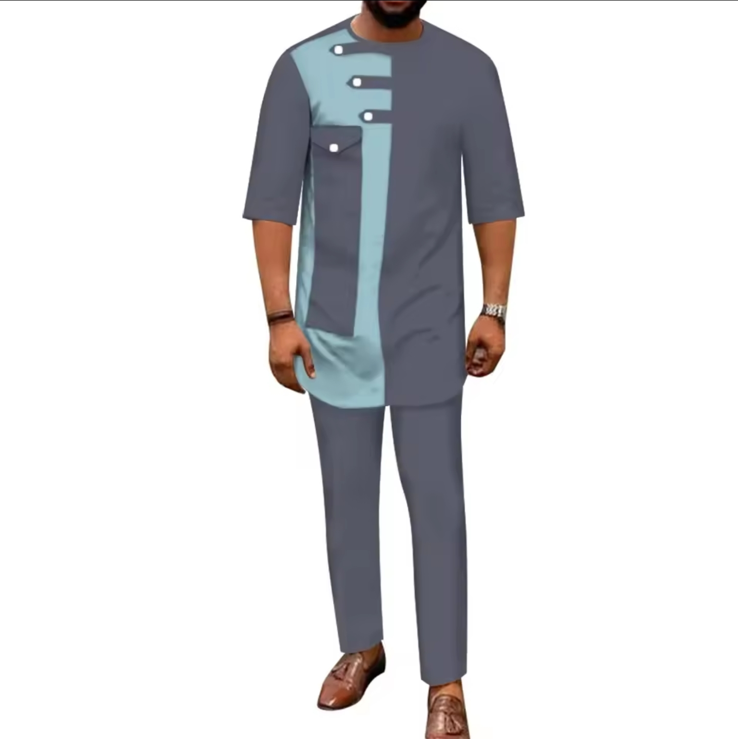 Summer African Dress Men T-shirt Suits Fashion Patchwork Handsome Men Light Thin Type Trouser Sets